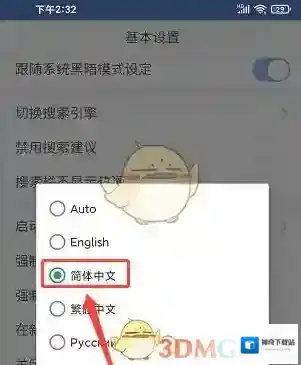 4、然后进入基本设置窗口,点击界面上切换语言选项。