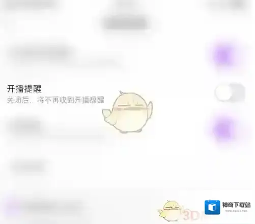5、“开播提醒”后面的圆点变为灰色即表示关闭奇秀开播提醒成功