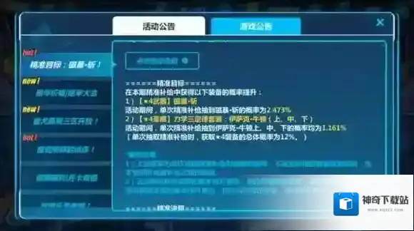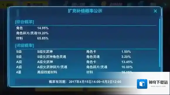 扩充补给的概率公示也随扩充补给的活动时间实时更新。
