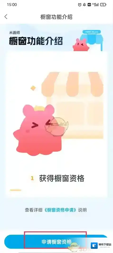 4、在这里你可以查看橱窗的功能有哪些,接下来点击“申请橱窗资格”。