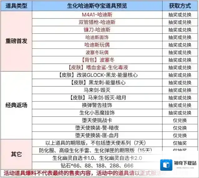 为了方便大家了解道具详情内容,我整理了一份哈迪斯夺宝道具表,请大家自行预览。需要注意的是,活动爆料不代表最终的售卖内容,活动中的道具请以正式服活动上线为准!