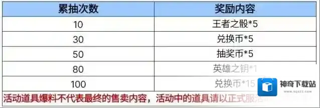 最后,本期生化夺宝活动还设有累抽奖励,累计一定抽奖次数可领取相应的道具。下面是累抽奖励表,请大家自行预览。值得一提的是,微氪玩家参与10次一元购刚好可以进行一次十连抽,拿下5个王者之骰的累抽奖励。