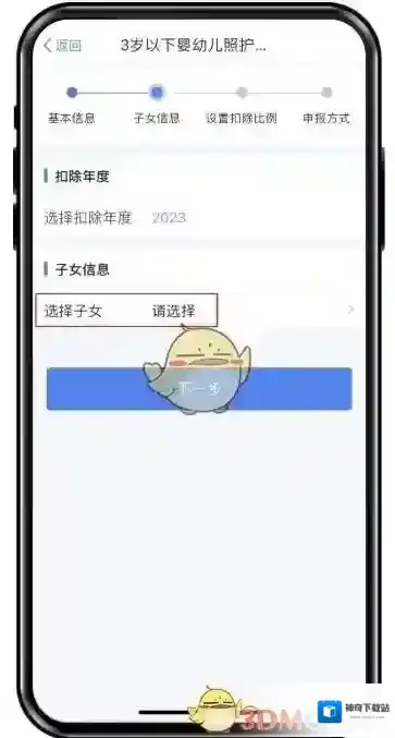2、然后我们选择“3岁以下婴幼儿照护”,接着选择扣除年度。