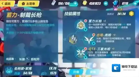 任一击后都可蓄力,制裁长枪均有6%概率使敌人流血3秒,每0.5秒造成120点伤害