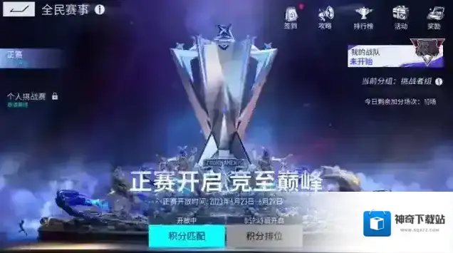 2.积分正赛海选开启,竞至巅峰;开放时间:2023年6月23日开启 至 2023年6月29日结束。正赛阶段参与战斗可获得大量赛事奖励;战队成员可通过参与[积分匹配] [积分排位]获取积分,最终积分排名前100名的战队将进入巅峰赛阶段继续进行角逐。