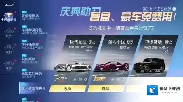 『豪车免费开』6月16日~6月29日,参与活动即可试驾8级盲盒车、豪车(7天),有机会试驾闪灵、哈迪斯、隐匿猎手等热门车哦~