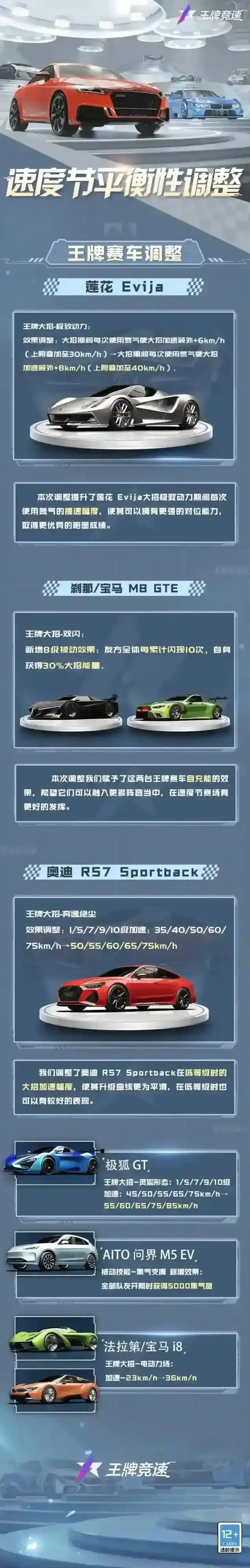 为了维护车辆平衡性生态,带来更好的竞速体验,本次更新带来了较多车辆的平衡性调整。
