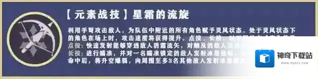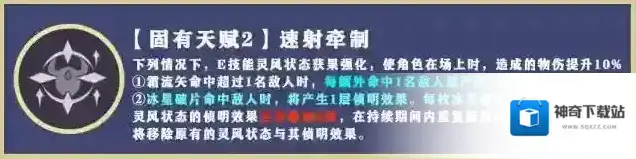 星霜的流旋的霜流矢首次命中敌人时,或是冰星信标命中敌人时,将产生1层固有天赋「速射牵制」的侦明效果。需要解锁固有天赋「速射牵制」。