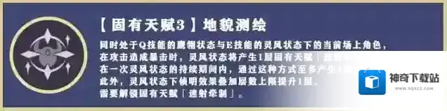 星霜的流旋灵风状态下的侦明效果叠加层数上限提升1层。需要解锁固有天赋「速射牵制」。此外,处于灵风状态下的当前场上角色,其物理伤害的暴击伤害提高60%。