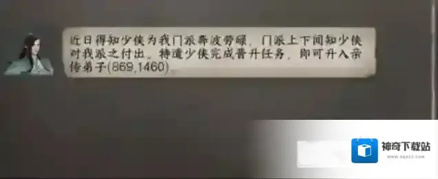 晋升的脚步不会停止,在你积累了更多的门派好感,并将其提升到50时,徐诸通会再次向你发出飞鸽,这次是要求你进行一场切磋,和盛文星对战。通过这场挑战,你将顺利晋升为关门弟子,为自己开启了更高的修行篇章。
