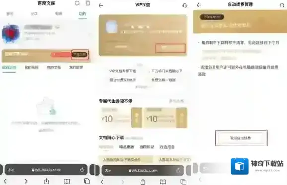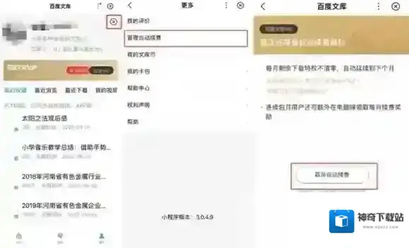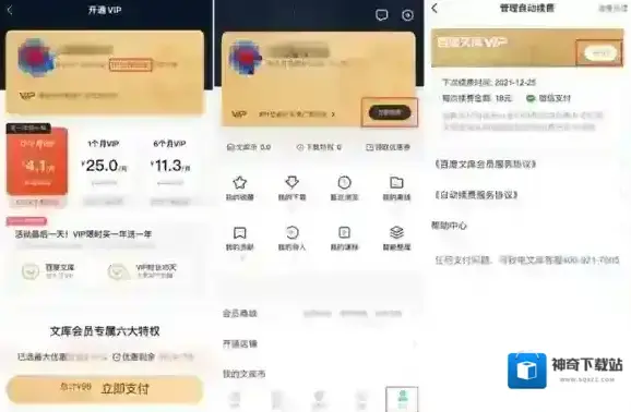 百度文库app–我的–立即续费–自动续费管理–关闭
