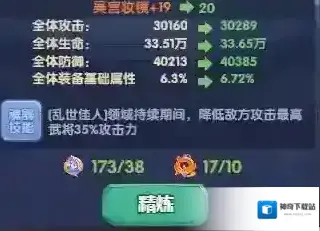 战魂能给全体武将带来包括攻击、生命、各种属性加成,还有全新属性–全体装备基础属性加成,百分比的提升武将装备的基础属性(仅包括四件基础装备,不包括神兵、兵符),且随着战魂培养度的提升而不断提高。但与神兽不同,战魂的所有属性提升效果都必须要上阵才能生效。
