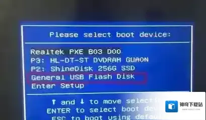 4、保存设置后自动重启进入LOGO画面时,一直按重启按F12/F7/ESC快捷键,在启动菜单中选择USB启动,如下图所示: