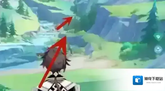 6、方向往右转一点,然后爬上山可以收集1个柔灯铃。