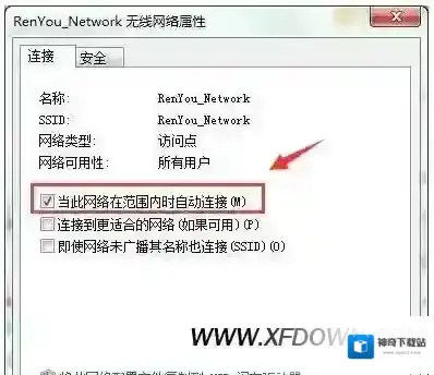 2、在属性中将“当此网络在范围内时自动连接”选项的前边的勾去掉即可