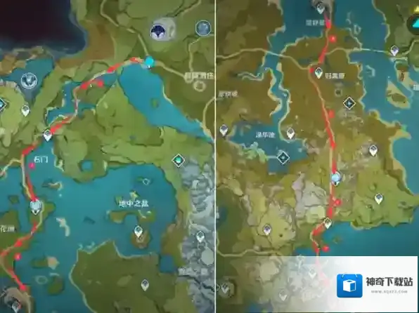 首次从蒙德到璃月的推荐线路: