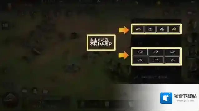 城外右上角有个放大镜功能,使用此功能可以筛选到我们想打的地,比如我想补8级石头地,只需要把石头和8级地选定就可只看到8级的石头地了。ps:资源产量因为第一天可以领很多的预备兵,在预备兵实际消耗不多的情况下,可适量少打粮食地,建议木、铁、石、粮比例维持在1:1:1:0.5为最佳。当然因为开荒期需要更新打的地块较多,所以前期也不需要太过在意,但是最好不要出现某项资源过多的情况(尤其是粮食地,因为商店是有预备兵可以换的)③标记地块: