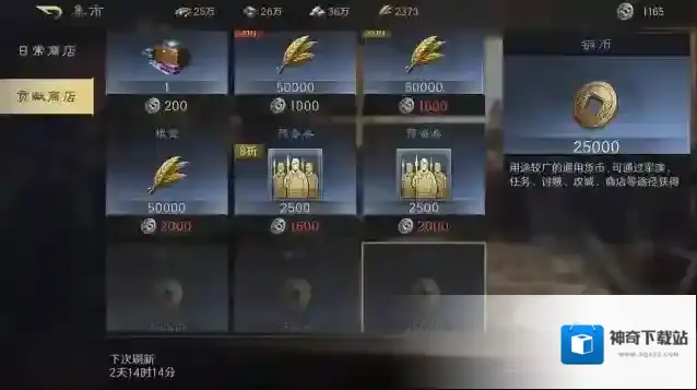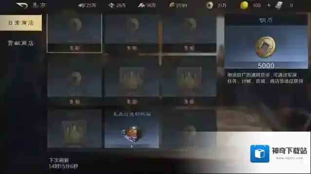 日常商店的所有铜币一定要换光,这个商店为每日刷新。记得每天都要来换!预备兵第一天可选择稍微晚一点购买,或者缺的时候购买,但是开荒期最好买光!良品打造材料则不建议前期购买!