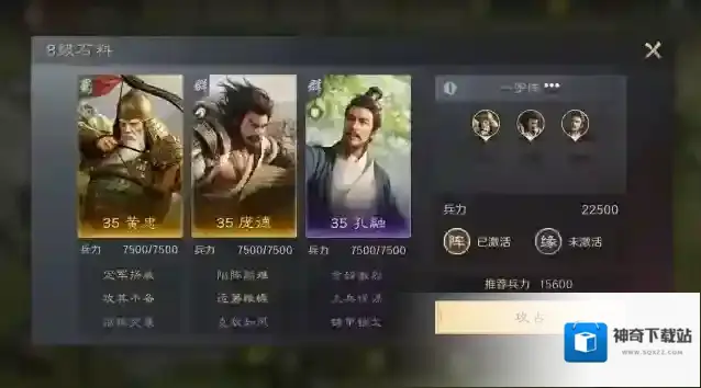 三、开荒主力队伍搭建合理搭配武将以最大化战斗力。前期武将少时,推荐使用前期较易获得的徐盛+大乔+孙策的组合。因孙策为第二天签到送的武将,第一天时可使用任意自带战法有伤害,且为多目标的武将代替,比如张飞、关羽、张郃、吕蒙、钟繇。