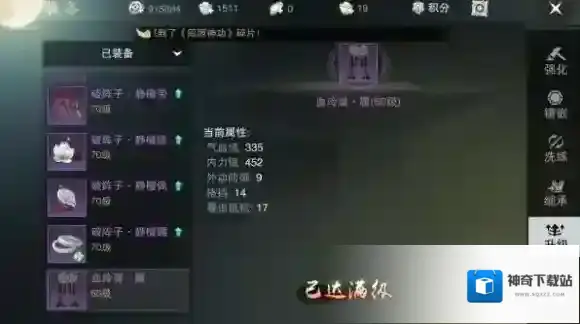 第二种,副本出的装备,可以进行升级,比如A副本出的是70级的套装,你收集齐了,但是等80级就不能用了吗?不是的,下图。般若套,可以70升80,并且升级材料都是通关副本就可以得到的,但是血玲珑就不能升级了。所以不要在拍卖行买装备,各位慢慢刷,总能集齐一套的,然后升级就可以了。