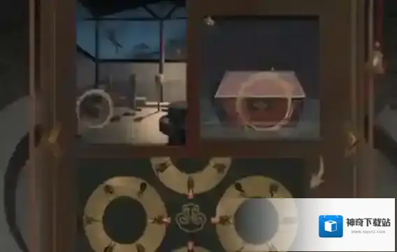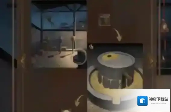14、用细谷粉来喂养马匹,当马低头可以查看线索,点击其中的木箱如图进行旋转即可将其打开。