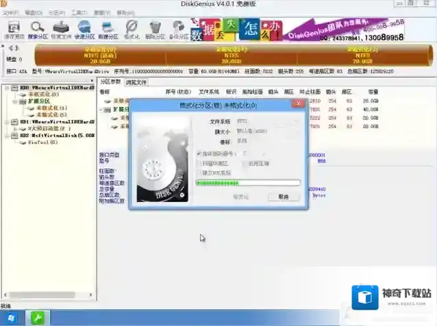 9、分区开始后,会出现格式化盘符的提示窗口,等待完成。退出DiskGenius软件。