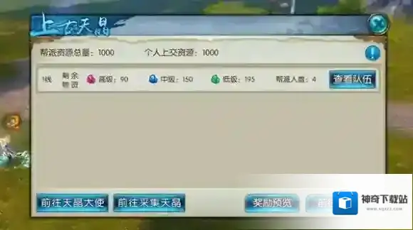 有天晶的仙友可在任一帮派大使处交付,成功交付会给同场景、同线路的全队成员和帮派积累资源积分。