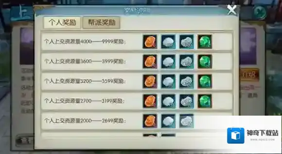 活动结束时,根据每个玩家上交的各等级帮会物资总量来结算成对应的资源积分来发放奖励。