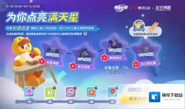 1月26日起星宝们在游戏中完成活跃任务就能收集“科普点”使用科普点可以兑换小红花系列奖励