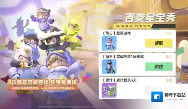 1月26日起,完成每日任务领取豹卷卷、名侦探时装体验卡如果在活动期间内累计登录六天就能从两款时装中选择一款免费领取!