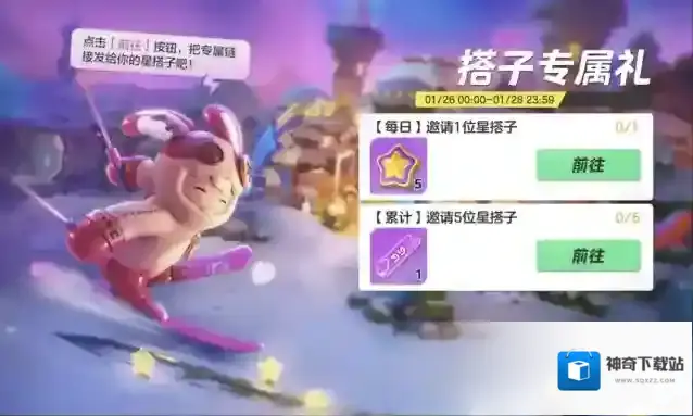1月26日起每日邀请一位“星搭子”就能领取星愿币累计邀请五位“星搭子”还能获得永久称号:寻找星搭子快来拉上你的搭子一起拿好礼吧!