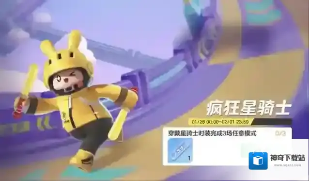 1月26日起穿戴星骑士时装完成三场任意模式就能获得称号:疯狂星骑士“是疯狂星骑士,不是疯狂星期四啦”