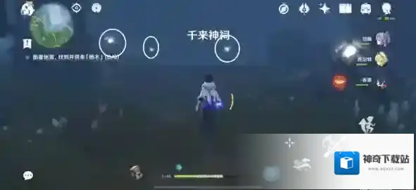 沿着白色鹤观的「雷石」往地图北方向走,前往供奉「栖木」,「栖木」长出树叶,附近的雾散去