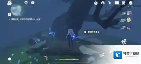 往地图的北方向走,靠近栖木后可以看到任务指引的光标,触碰「栖木」