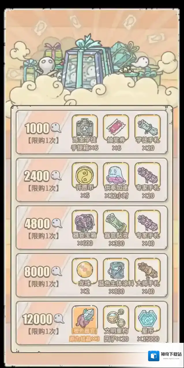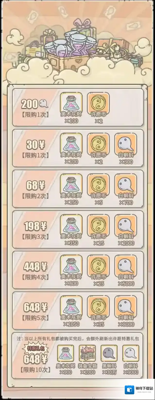 活动期间,贩售机将出现福利礼包,每天5点刷新,售价1白蝌蚪。