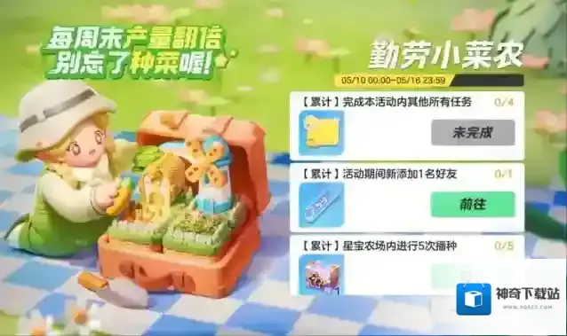 5月10日-5月16日游玩星宝农场模式完成任务免费获取小甜豆聊天框永久称号-种菜小搭子