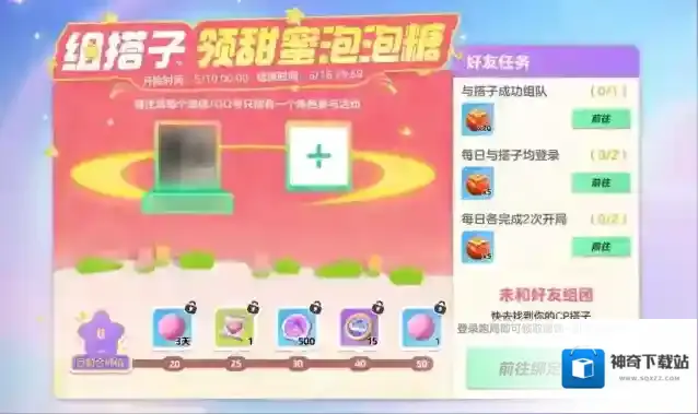 5月10日-5月16日完成双人组队任务,提升亲密度即可免费获取面饰-甜蜜泡泡糖