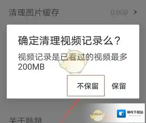 跳跳舞蹈app清理视频记录方法:打开跳跳舞蹈APP,点击右下角“我的”进入个人中心,点击右上角齿轮图标进入设置页面,选择“清理视频记录”选项,在弹出提示框中点击“不保留”,即可完成视频记录的清理操作。
