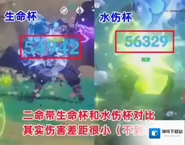 另外,如果你的芙宁娜是二命,触发二命效果后,可最多额外固定增加21430点生命值上限(140%是根据基础生命加成)。加上芙宁娜自身的生命值就已经差不多4W了。不过有趣的是,二命芙宁娜选择生命杯或水伤杯差距非常小,实测其余条件一致的前提下,水伤杯最高暴击伤害为5W6,生命杯则是5W4,差距不到3%。选哪个其实主要看词条。