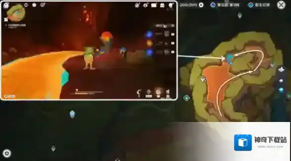 5、完成解谜后,继续前进,打碎凝固的熔岩;