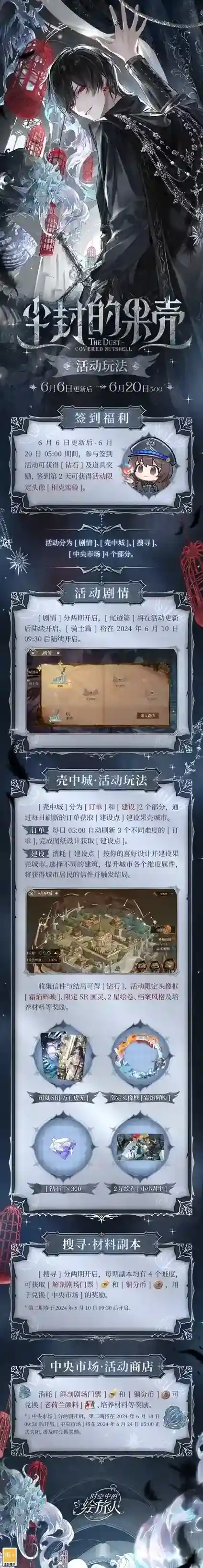 全新活动「尘封的果壳」将于6月6日更新后开启。活动剧情分为[尾迹篇]和[骑士篇],[尾迹篇]将于6月6日更新后解锁,[骑士篇]于6月10日09:30后解锁。