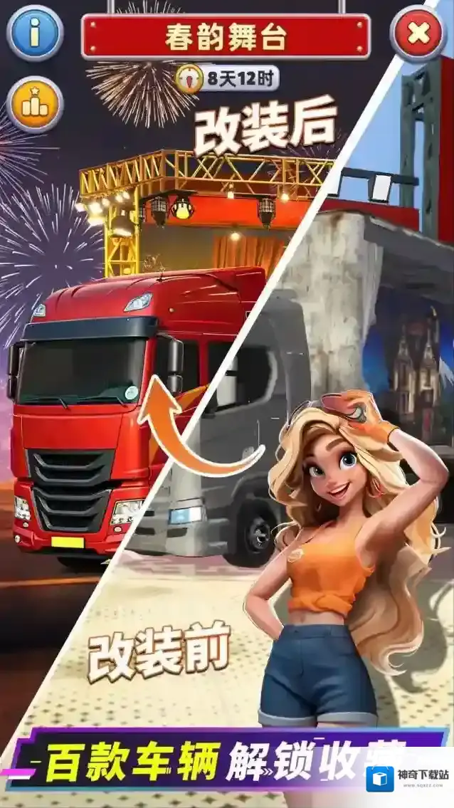 消消闯天下是一款非常有趣的消除闯关游戏,你可以通过消除闯关的玩法收集更多资源来加速卡车的修复和改装,最终你可以创建专属于自己的车队,并且将自己的卡车维修厂良好的运转起来。
