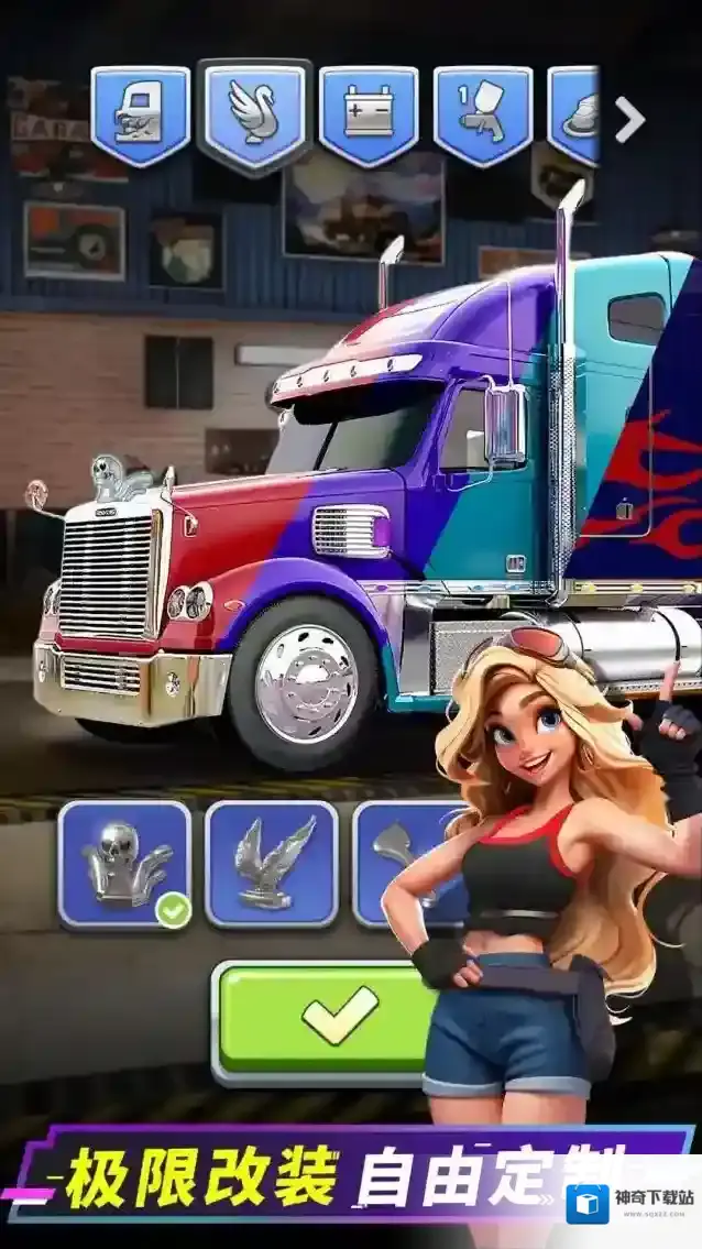 1、创新的游戏主题,自由改装车辆完成车辆的收藏。