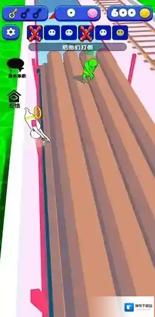 3、打倒敌方人物,然后拖拽它将它丢出去