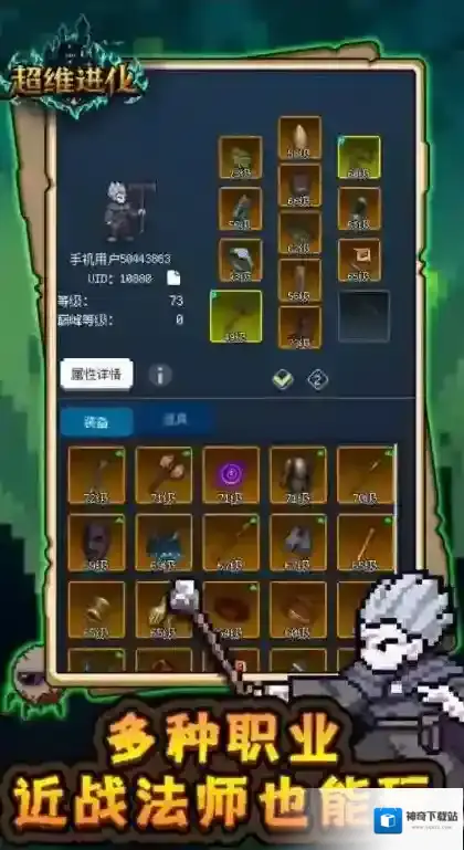 超维进化,一款暗黑像素闯关游戏,玩家将通过击败各种怪物来获得不同的装备提升战斗力。在超维进化里有各种各样的装备可以让你使用,不同的技能流派和元素可以自由搭配来体验新的乐趣,非常多的副本将等你去选择挑战,不断消灭更多的敌人来体验全新的冒险吧。
