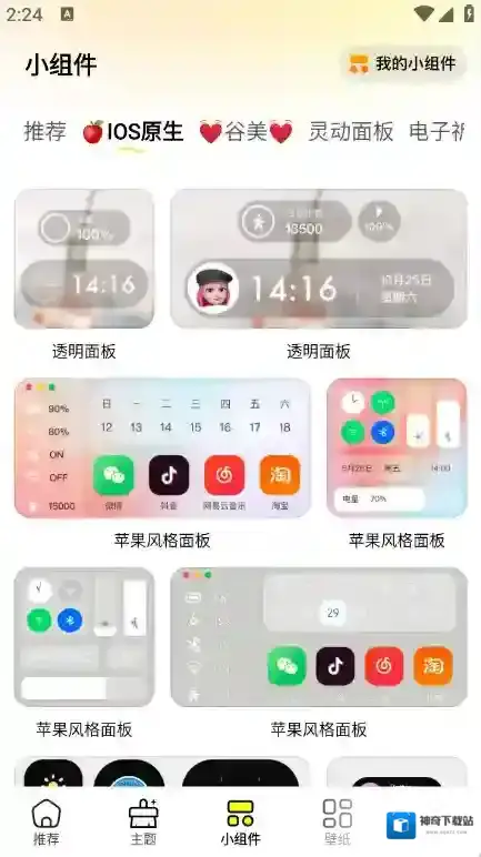 2、进入首页之后底部栏中汇集了很多的资源,包括小组件、壁纸以及主题。
