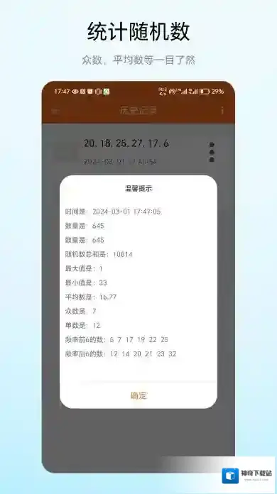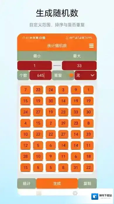 统计随机数app是一款可以统计数量的数字工具,让用户们在这里提供更便捷的生成方式,可以看到很多的数字排列,还能为你提供更多详细的参数,让你都能知晓其中的数据判断,非常实用的,一起来这里看看吧!
