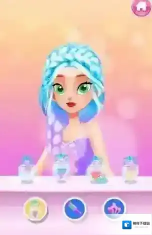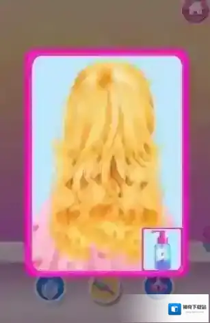 3、完成护理后,按箭头指引点击梳子图标,梳理角色头发(如将头发梳成蓝色辫子),打造心仪发型。