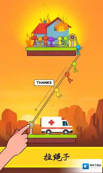 1、玩家通过拉动场景中的绳子,改变物体的位置和状态,完成救援或通关目标。