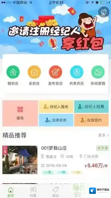 北京共享农庄庄家客户端是一款提供农场服务的软件。面向用户提供了丰富的农副产品采购以及休闲度假服务。用户可以通过手机搜索满意的农场,预订需要的服务项目!打造最绿色健康的生态农业服务平台!欢迎在梦马下载库下载。